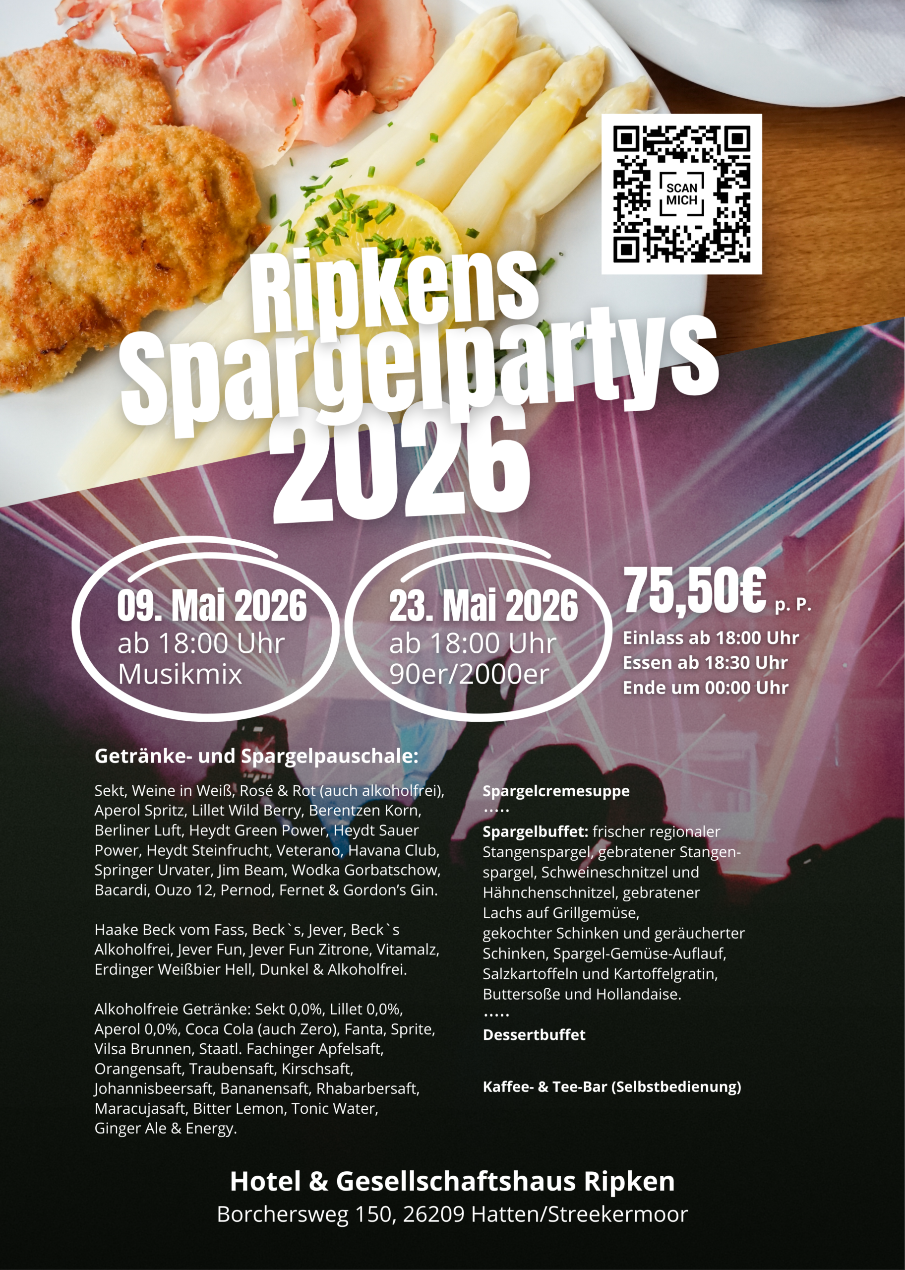 Spargelparty am 09.05.2026 unter dem Motto Musikmix mit DJ Paddy