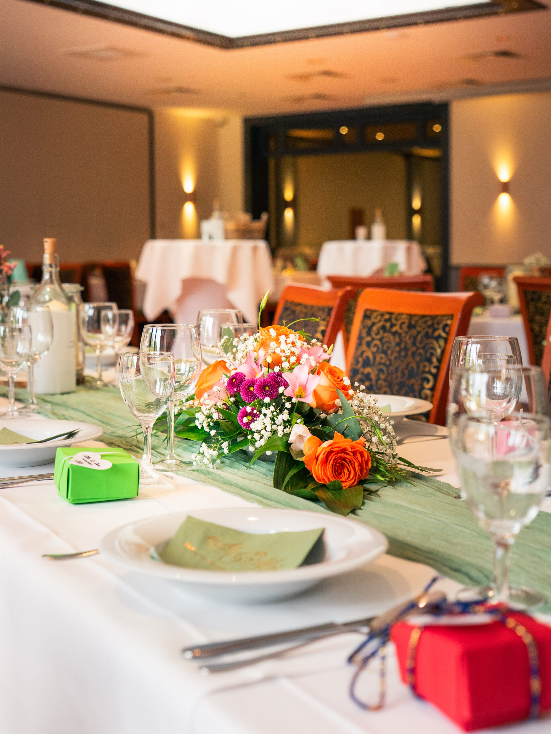 Egal ob 30 oder 300 Personen, der komplett neu gestaltete Festsaal ist die perfekte Location für Ihre Hochzeitsfeier! Durch die moderne Lichtanlage, das Echtholzparkett, die integrierte Theke und die flexible Bühne wird jedes Hochzeitsfest zu einem individuellem und unvergesslichen Erlebnis.